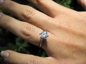 I’m watching him closely and one second he was standing, the next second he was on the ground. It was like milliseconds. He was scrounging through the bushes. I thought he was pulling a bush out and then he pulled out a box. I didn’t see the box at first, I just heard the words “Will you marry me?”.