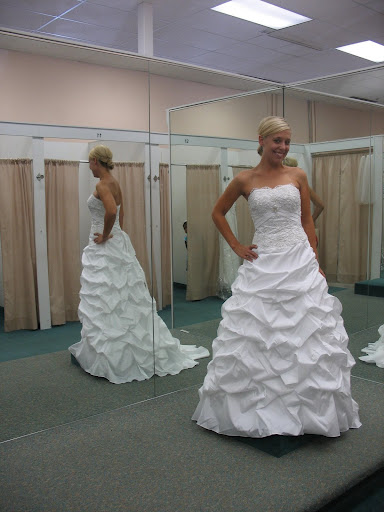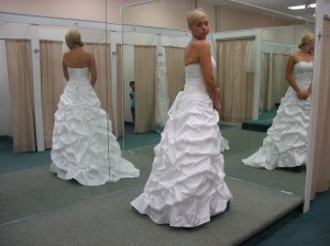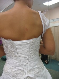 By the way, mine will be more modest..The one I chose is strapless but is getting altered. 🙂 It’s going to look so elegant. It was actually the first dress I tried on too!