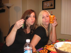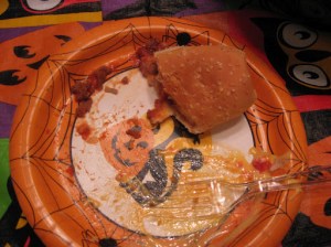 I love Britt. Not only does she have a blood curtling scream that makes me pee my pants every time she does it, or the fact that I’ve had many stories involving me laughing my butt off, or maybe its because she really likes Halloween and she basically goes all out every year decorating or making sure she has a great costume. I mean just a few weeks ago before I moved out, I opened my door and lo and behold a pair of candy corn socks were waiting for me (which I ended up wearing them to school that day). In the spirit of things, she had a Halloween dinner last night that was great as usual. The main course: Halloweenies and my favorite, pumpkin cookies for dessert.