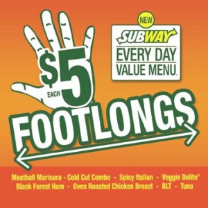 I put Subway first on my list. Whoever came up with the idea for five dollar foot longs is genius. I go to Subway twice a week for a great meal and I even keep the calories down!