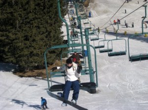 I made Mike go on a seperate lift because I get too scared jumping off the lift. Thats the only part I am afraid of. Funny thing is I biffed it anyway! 🙂