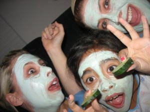 So Wayne was gone one night for work and Jen, Sarah and I decided to have a “spa” night, so I went to walmart and bought cucumbers, face scrub, and some pedicure stuff and well…you see the rest.