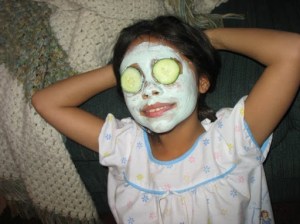 So Wayne was gone one night for work and Jen, Sarah and I decided to have a “spa” night, so I went to walmart and bought cucumbers, face scrub, and some pedicure stuff and well…you see the rest.