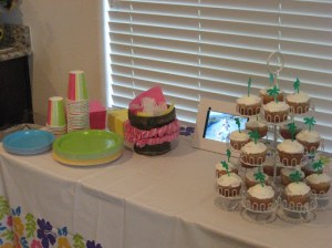 I love the cupcake tree and the Hawaiian decorations. The back porch had parrots and canopies..it was so cute!