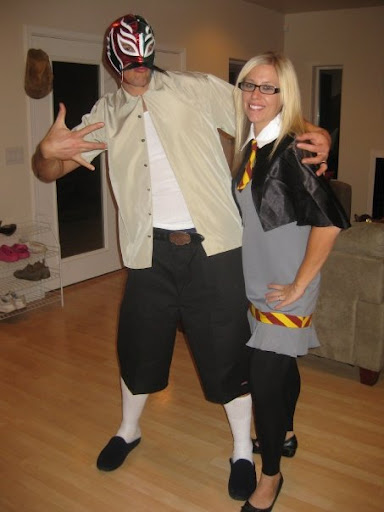 For Halloween, we went to a friend’s house and ate some good food, carved some pumpkins, and watched some scary movies. We had such a good time just getting out an enjoying ourselves. Mike dressed up as a…well you can guess…and I was trying for Hermione, but the blonde hair throws it off, so let’s just say I went I am a Harry Potter character. 🙂