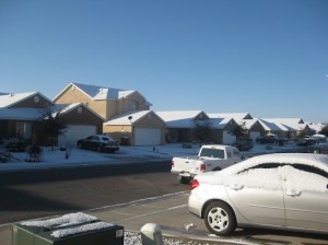 Snow! Posted on December 5, 2009 by thefasteryoupedal Las Cruces got some snow! I guess it is not very common here, but ortunately for me, my first winter here was a snowy one. Also, I got one snow day and a two hour delay on Tuesday! Our neighborhood the next morning. The school football field. My doorway at school. So icy! The cars! Share this: Click to share on X (Opens in new window) X Click to share on Facebook (Opens in new window) Facebook Click to email a link to a friend (Opens in new window) Email Click to share on Pinterest (Opens in new window) Pinterest Like Loading... Related