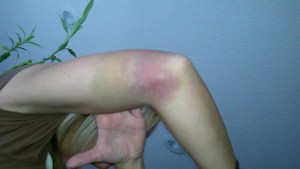 I was riding sport, so I wanted to make sure none of the beginners would catch me because I had just decided last minute to switch to sport (which meant doing 15 miles instead of 6 miles). So I think my pride got the best of me when I decided to jump up without checking out my arm.
