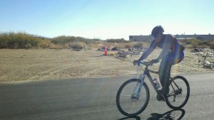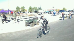 Second, was the runners. They had to run a 5k without a backpack. 🙂 Third,was a mountain bike race for 15 miles. This is me talking off after Cat came through on her 5k.