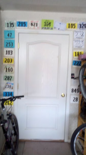 So our garage wall is getting a big collection of race numbers on it lately. We kind of like it even if it does look a little “white trash”. 🙂 Today we added another set of numbers, but this time, it was for a triatholon.