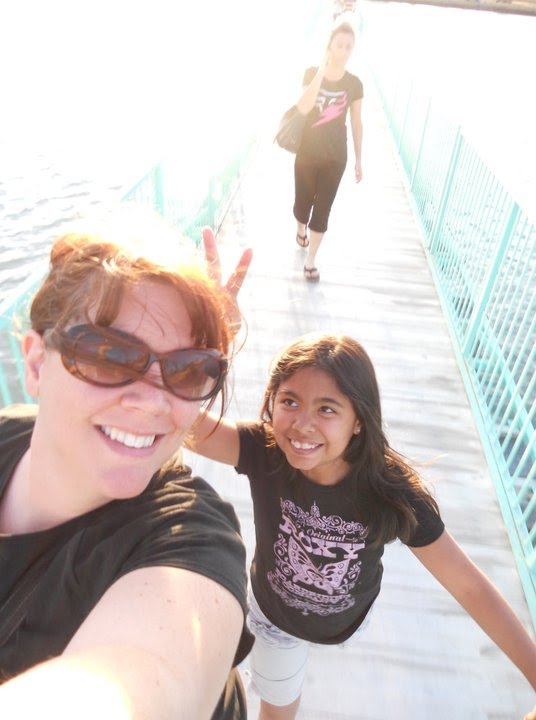 Walking across the bridge in Carlsbad..