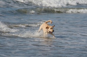 As soon as I let him loose, he ran to the swimming pool and splashed around like a psycho. By then five other dogs were following in him in it, including two bull mastiffs. Then, he starts taking off in a dead run and the pack followed him!