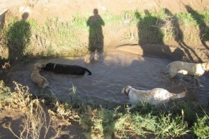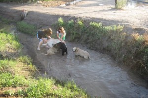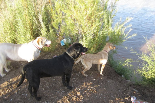 So we found out our dog is a swimmer! Mike was brave enough to take him down to the river and try it out. Barney got to spend some time with his cousins Riley, Molly, and Trixie for the fourth of July. They were able to have some good times in the water. (See our 4th of July post!)