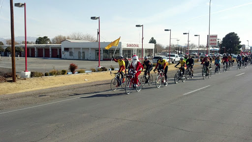 So Mike and I joined the local bike club and Mike joined he racing team called “Zia Velo”. Every year they put on a Toyr For Tots fundraiser where they ride around town and then meet up and give toys. We had a police escort through Mesilla and then down Valley (which is a realy big street in town).