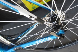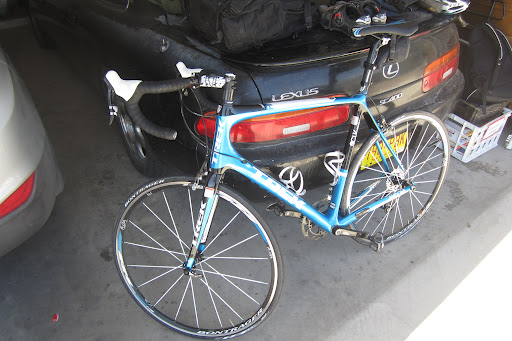 Last week Mike was riding with some friends on a road ride and a car turned in front of the group. They all had to brake on their bikes and another rider hit him. Poor Postal Service bike was gone.