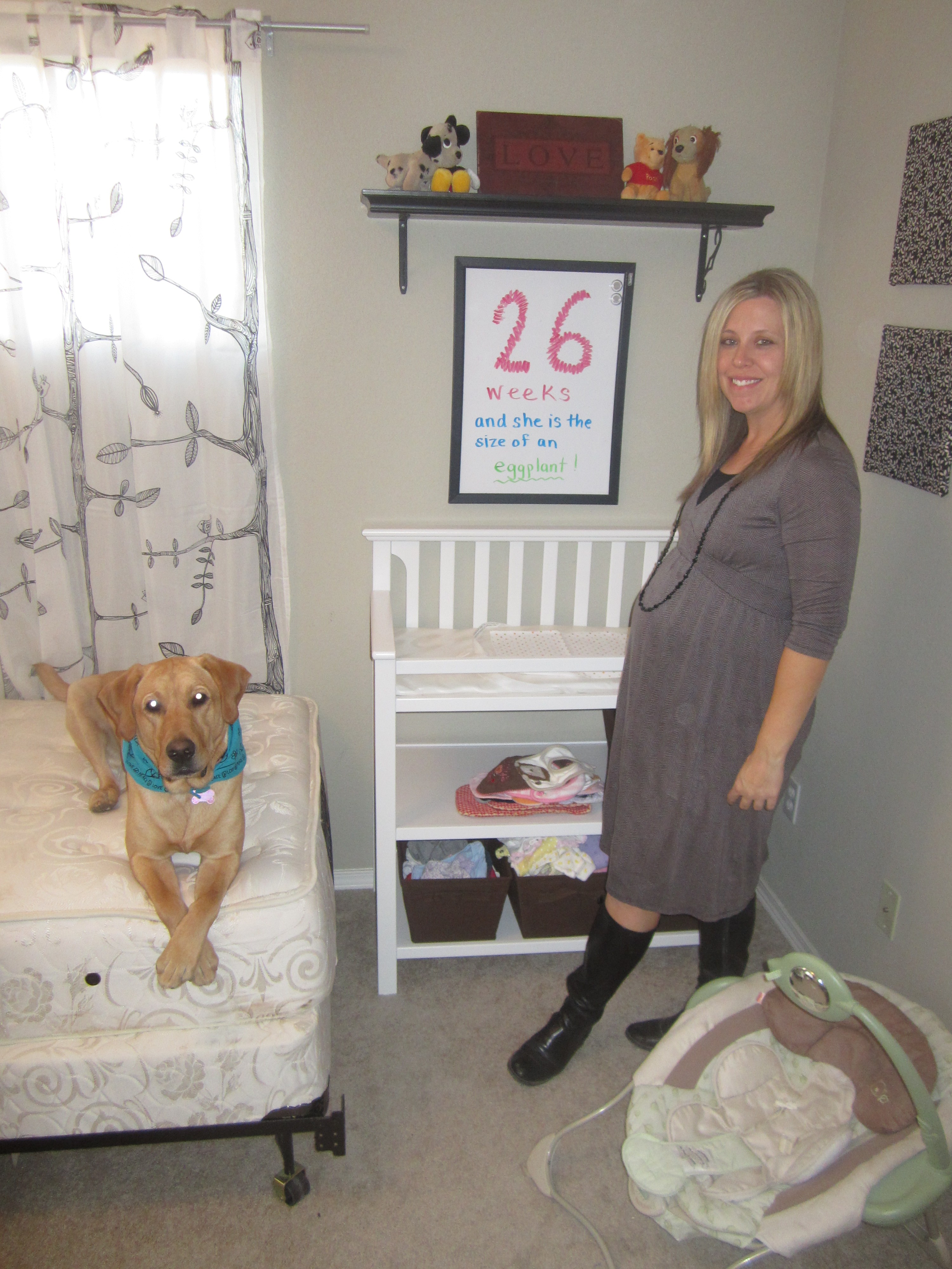 Gender prediction: Girl. Not gonna lie…I still think that it could be a boy, just because I know people that happened to. The nursery is neutral anyway. 🙂