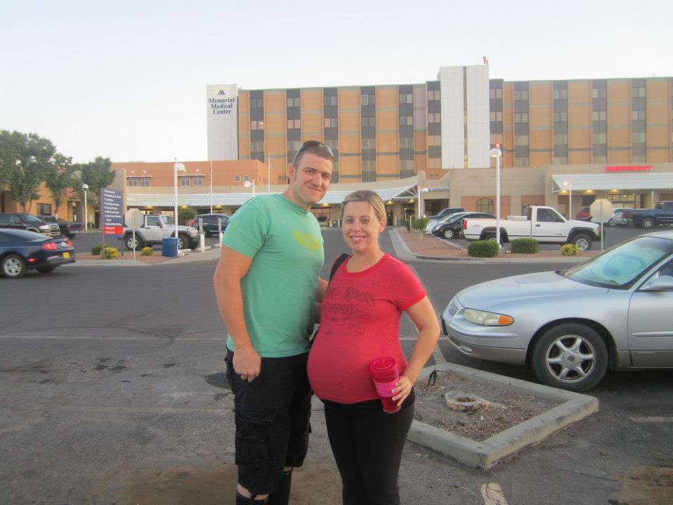 We signed in at about 6:30 and they put me in triage. The nurse said I looked to happy to be close to labor. She told me I would hate her later on and that’s when I would definitely be in labor. About an hour or two later is when the tears started flowing. I was still sitting in triage and I was getting mad because they weren’t moving me to a room and doing anything. The custodian kept coming in to clean up the room and I would get so excited that the nurse was coming and it wasn’t her. Finally, the midwife showed up to talk to me about walking around the hallway because I wasn’t dilated enough. The contractions hurt pretty bad. When you see the pictures my sister took, I was not acting.