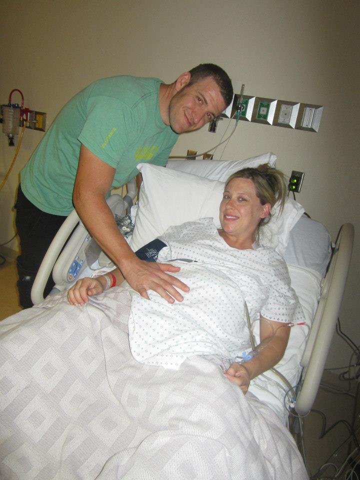 They run Olivia over to check on her and they tell us her temperature is a little high so they are going to keep an eye on her. Just a side note for those of you who had babies, when they push down on your stomach to get everything out….that hurts more than the birth!!
