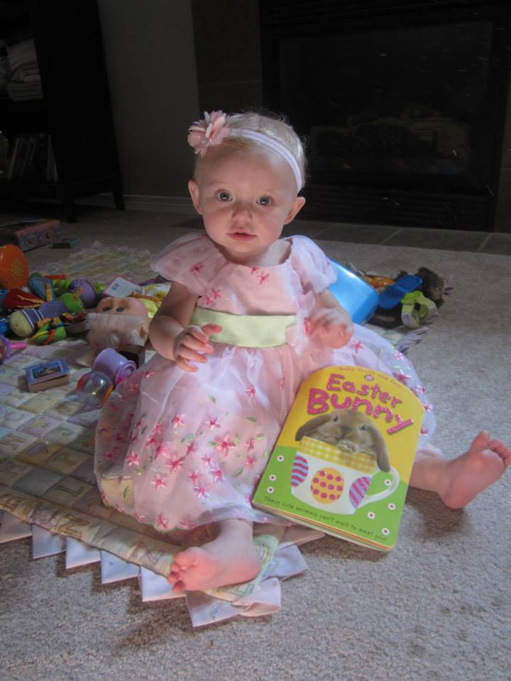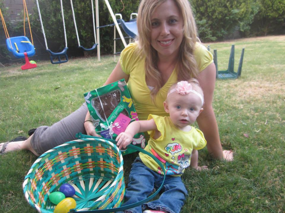 Then on Easter morning Olivia put on her pretty Easter dress from Aunt Debbie and we went to church. It was really funny because she wasn’t walking yet so she hated how long the dress was on her knees and did this weird “spider crawl” across the room.
