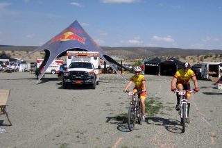 The Yucca Triathlon starts out with a 8k run, a 45k bike, and ends with a 400m swim. Mike and I had googled 8k and found out it was around 4 miles, so the whole time we kept thinking it was only a little more than a 5k on the run. Piece of cake. We didn’t look at the decimal until the night before and realized it was 4.9…5 miles! Mike was bummed because of all the rain, they had to shorten the ride to 14 miles. There was a terrible headwind, so it ended up working out that way.