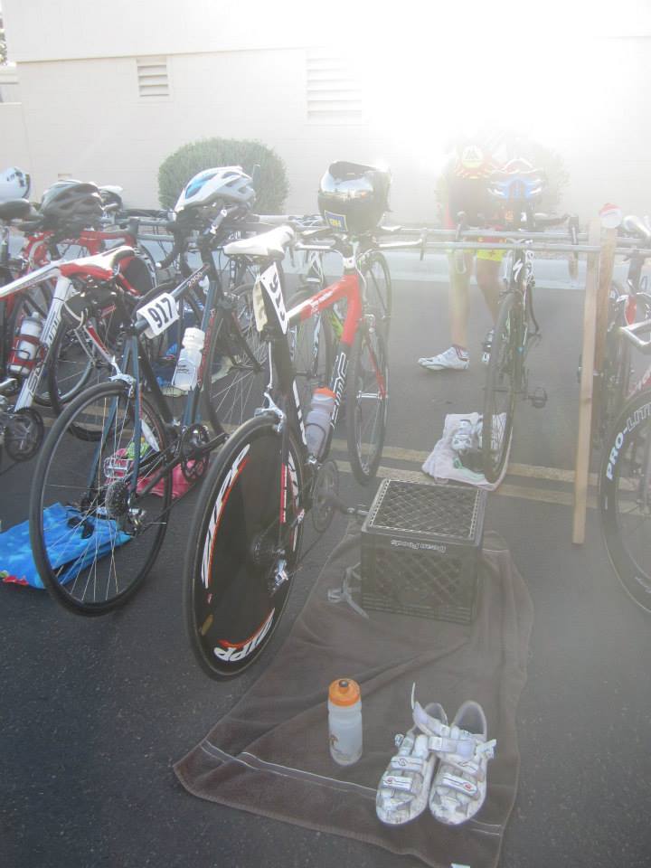 As soon as I got to the swim, I hopped in the pool and it felt awesome and warm! I knew I was going to be crappy…and I was, but I didn’t stop. I think I was around ten to eleven minutes. My goal was nine. Ha!