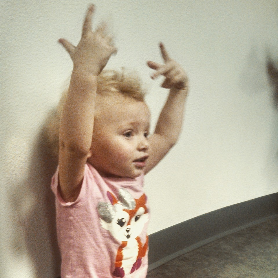 Favorites: She loves to dance, and by dance I mean she likes to stand stiff legged and rock back and forth or twirl in a circle a million times. She loves her rings that stack. She is really into stacking right now (dad taught her). She loves to go out front and play with the hose and helps me to pick up weeds. She loves to go “bye bye” and waits at the door for me when I say it. When it’s bath time, she starts climbing the stairs knowing right where to go.