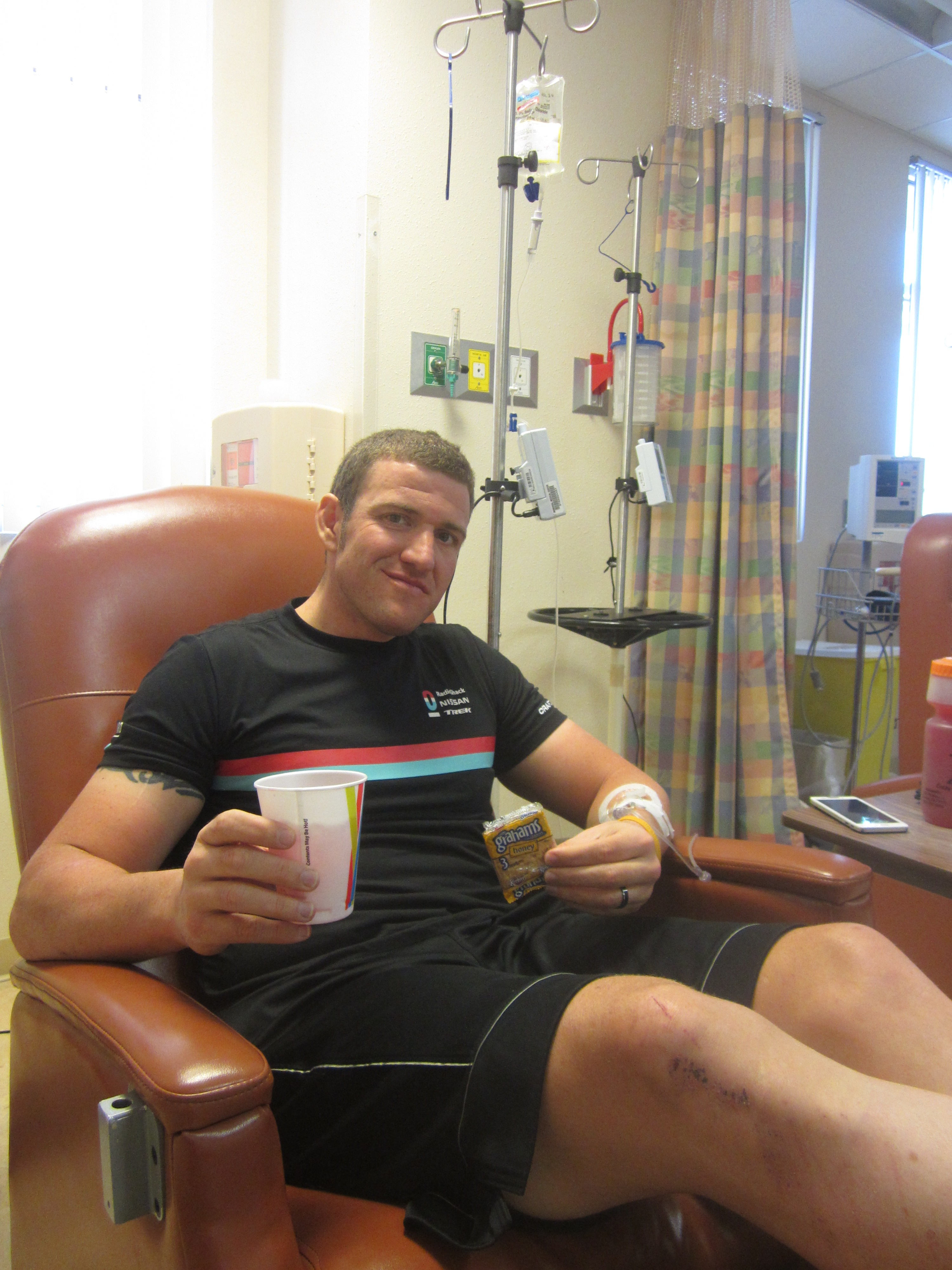 In April of 2013, Mike had another flare up of MS. This time he lost feeling in his face, which meant a new lesion was forming in his brain. Again, he went into infusion therapy and took pills to treat the symptoms and to reduce the swelling of the lesion.
